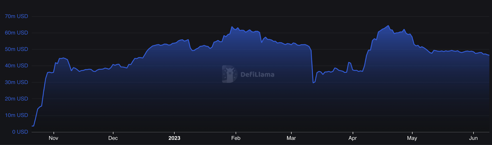- Finally, switching gears to the Aptos DeFi ecosystem, while TVL has fluctuated in previous months due to events such as the USDC depeg, it now stands at close to $50M USD according to DeFiLlama. Newcomers such as Thala Labs and Tsunami have also seen significant growth and increased TVL share recently.