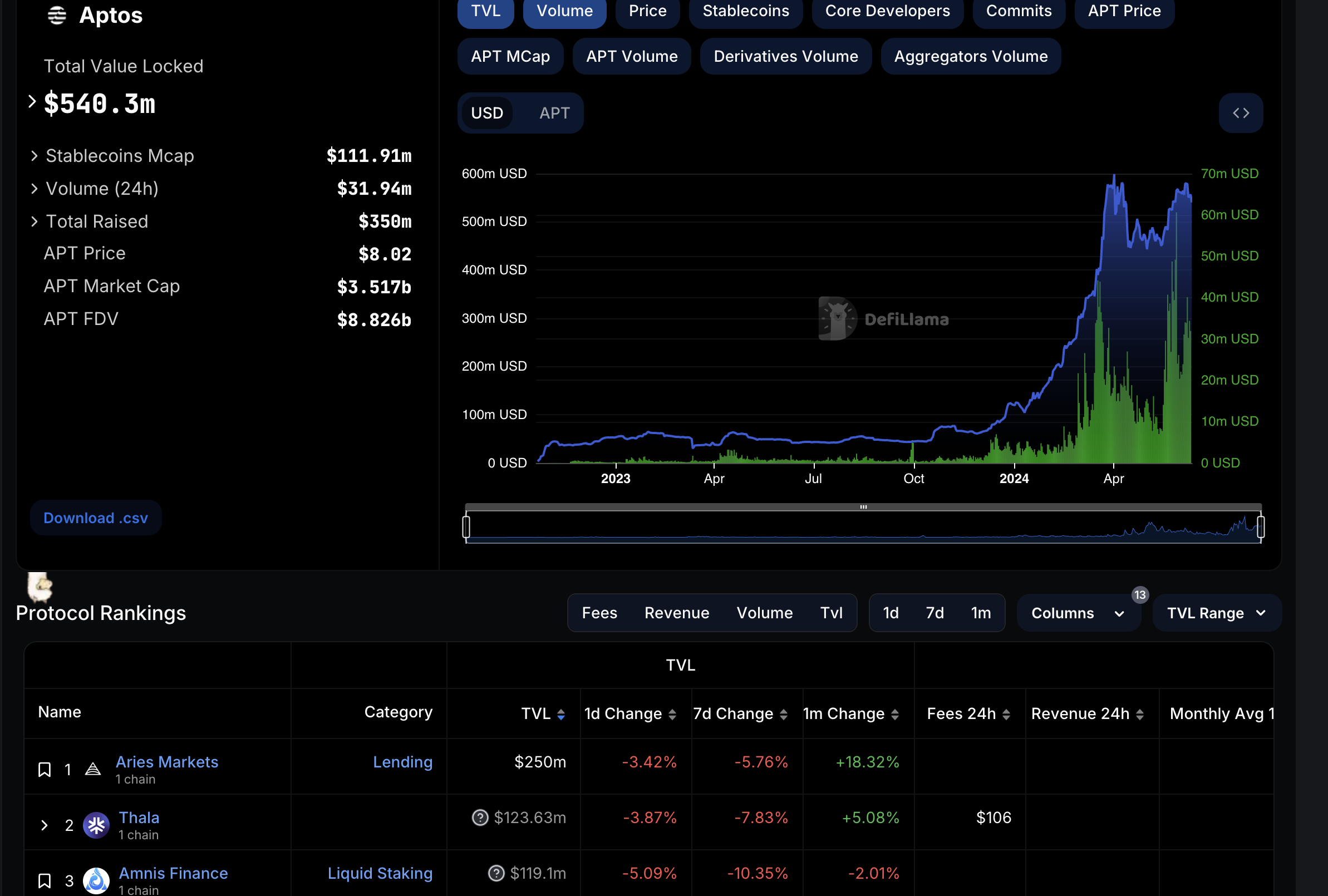 π Aries Markets is the No.1 lending protocol on Aptos with $260M in TVL and $120M in borrowed assets, 700k users