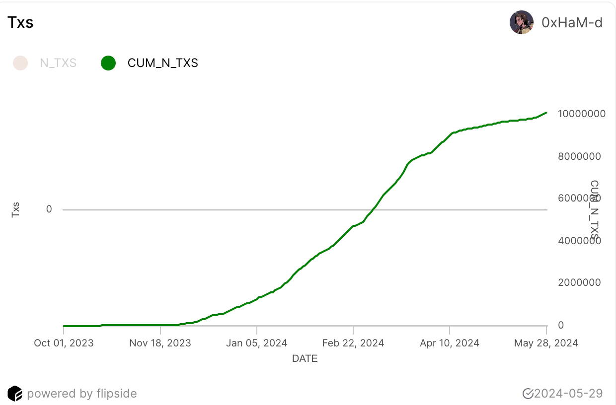 - The number of transactions on Aries has grown significantly, exceeding 10M. This substantial increase underscores the platform's expanding user engagement and operational scale.