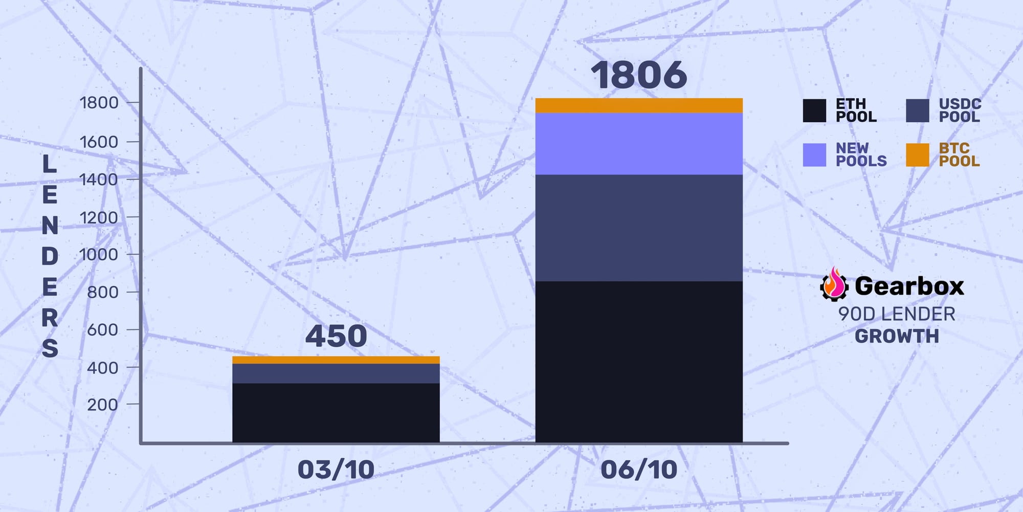 - 4 new pools, 4X lenders. The lending pools are on-course to generate over $12M annualised in interest for lenders. This yield opportunity has led to the number of lenders increasing from 450 in march to 1,806 today. 4 new pools also enabled broader network effects and tapped into more lenders, gaining $40M in TVL.