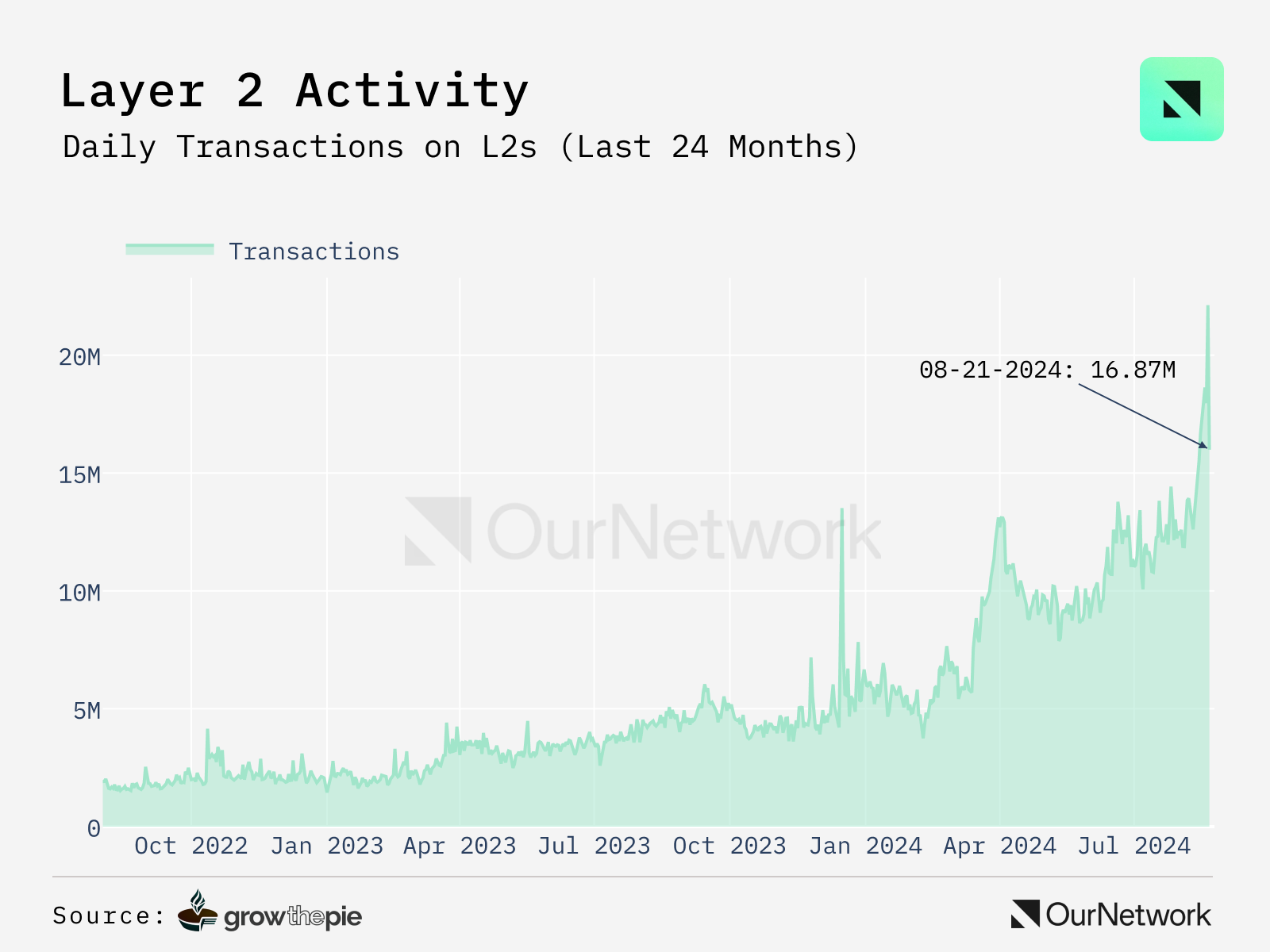 - growthepie provides curated analytics on Layer 2s. Since their inception, L2s have shown impressive growth β the aggregated daily transaction count recently reached an all-time high of ~16.87M in August.