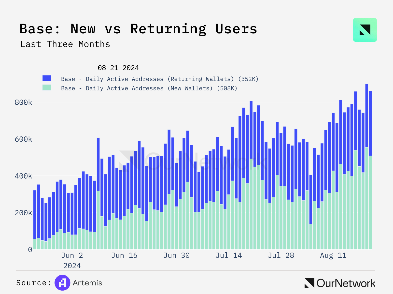 - Base has seen a surge of new wallets recently, driven by Uniswap and Blocklords, a game utilizing account abstraction. As the Base ecosystem expands, there's little reason why users won't continue to onboard.