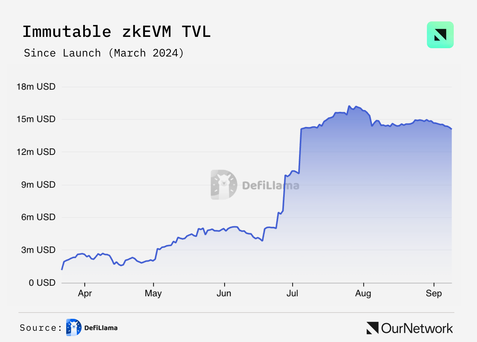 - Immutable zkEVM, a dedicated gaming blockchain powered by Polygon technology, is a key piece of infrastructure in the Web3 gaming ecosystem. Since its launch, it has attracted 6.8M active wallets that have conducted a total of 73M transactions. Its Total Value Locked (TVL) has risen to $14.3M, representing a 178% increase over the past 90 days