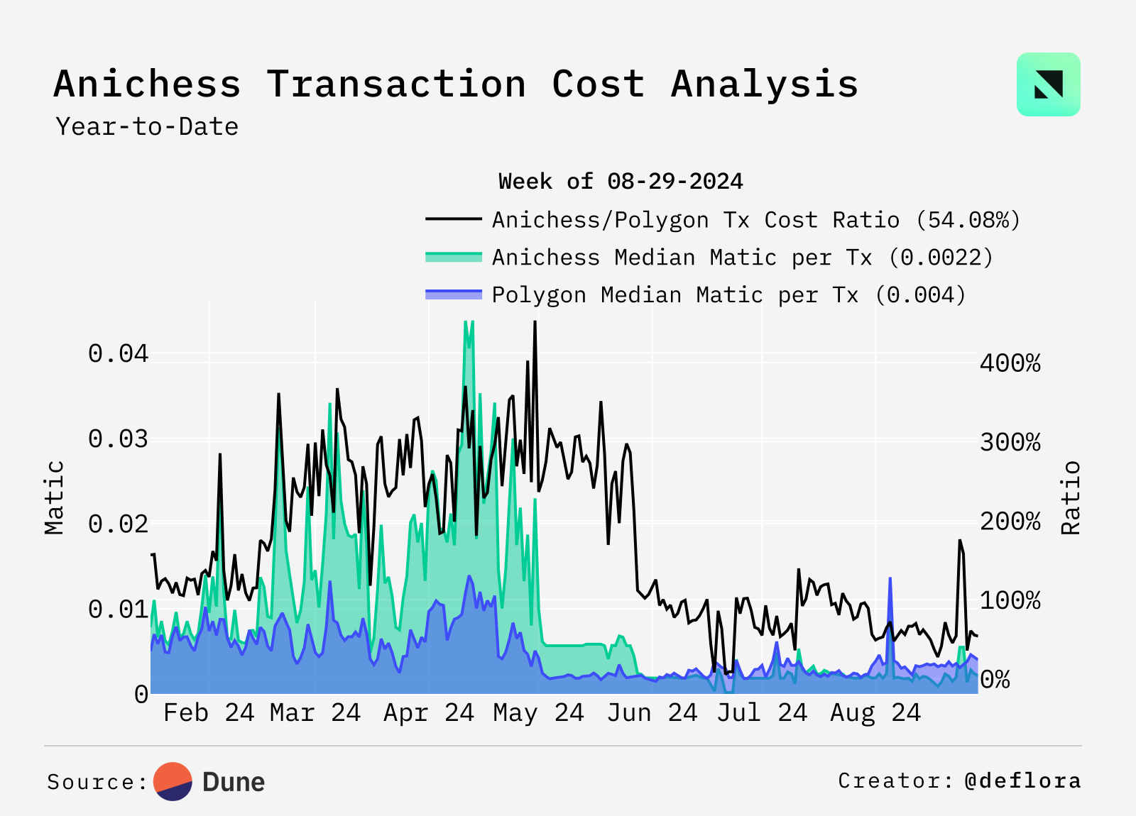- Anichess maintains growth despite volatile transaction costs: Despite fee spikes, the platform grew to 283.8k total users with a 5.59% new user rate and 3.189% daily active user ratio. This suggests a value proposition stronger than network costs, potentially due to its unique gameplay mechanics.