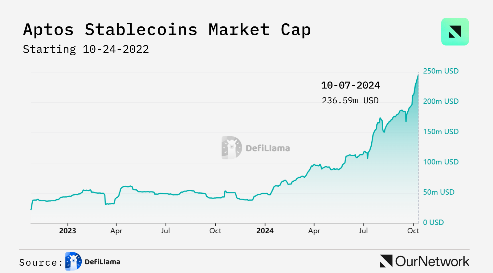 - Aptos is seeing strong DeFi momentum with ~$50M in net stablecoins bridged to the network in the past month. This $10M monthly net flow reflects growing confidence in Aptos as more users leverage Aptos’ scalable infrastructure for dApps and the likes of Tether announcing plans to integrate USDT, which at $119B, is the leading stablecoin by market cap.