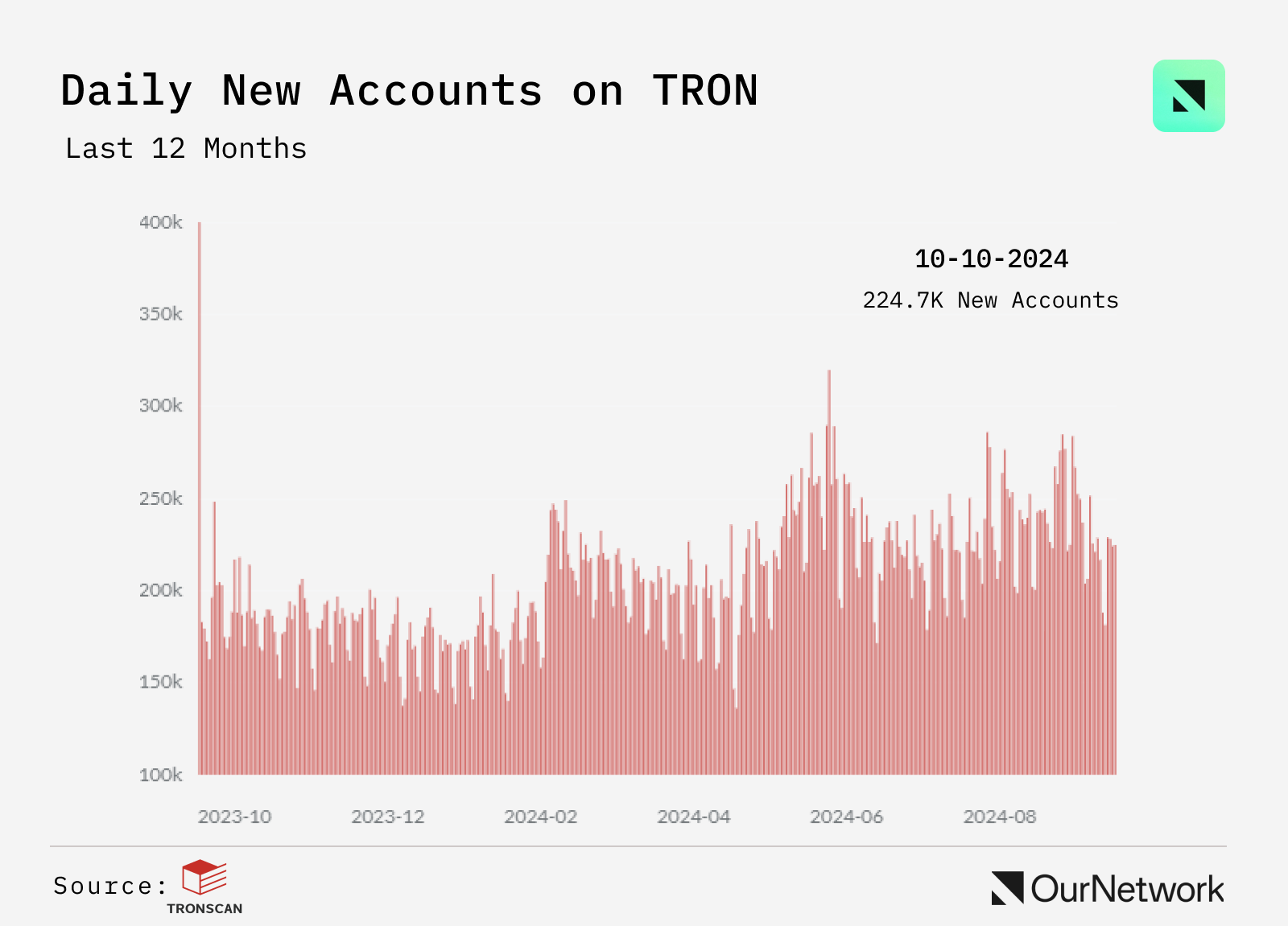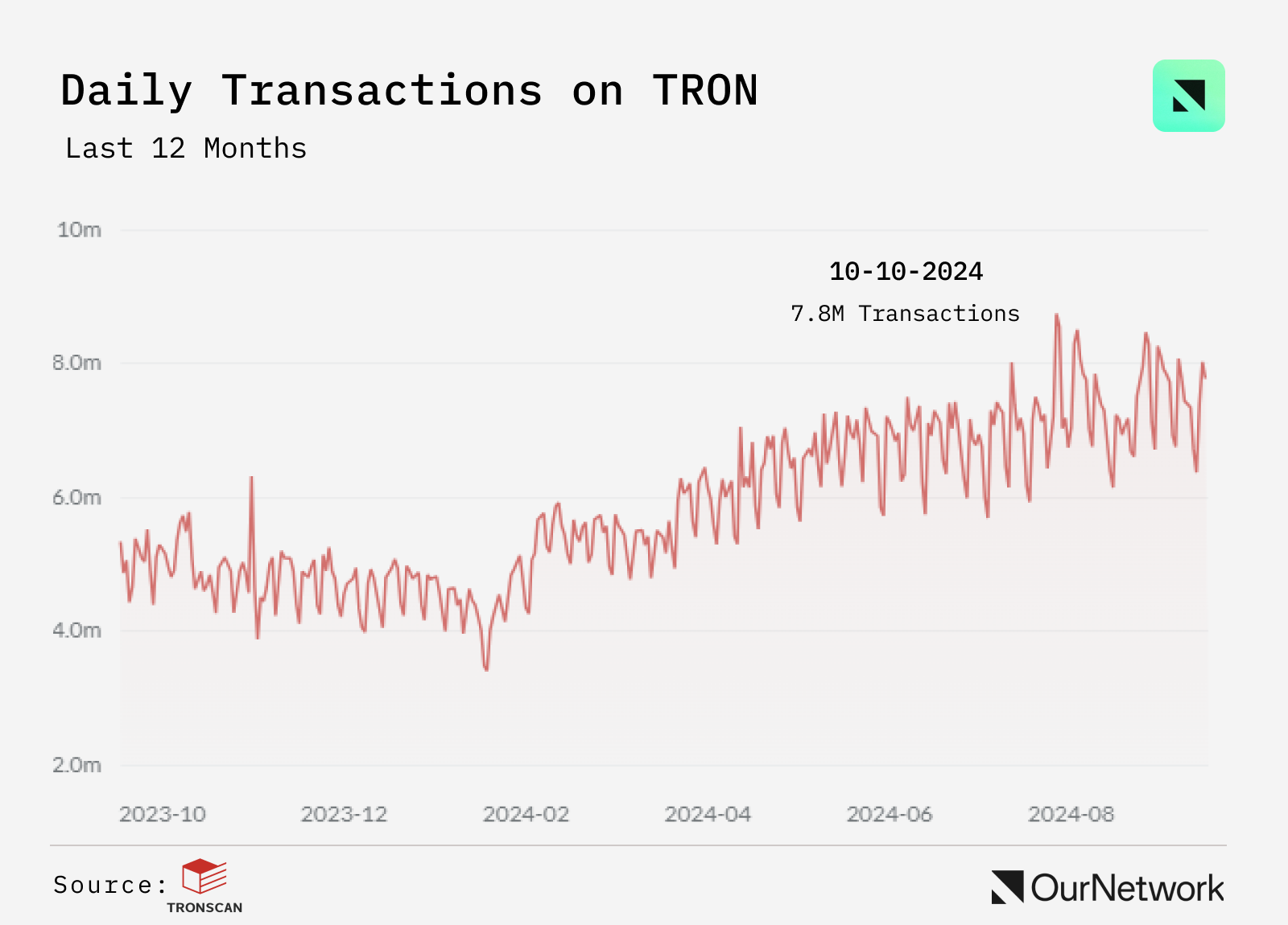 - TRON is the trusted network for developers, institutions, and individuals worldwide. The total transfer volume now exceeds $14T. Over the last 30 days, the daily transactions surpassed 7.4M on average and there are now more than 263M user accounts on the blockchain with an average of 237k new accounts created per day. TRON's accessibility, combined with the DAO's commitment to meaningful change, highlights its potential to drive impact on a global scale.