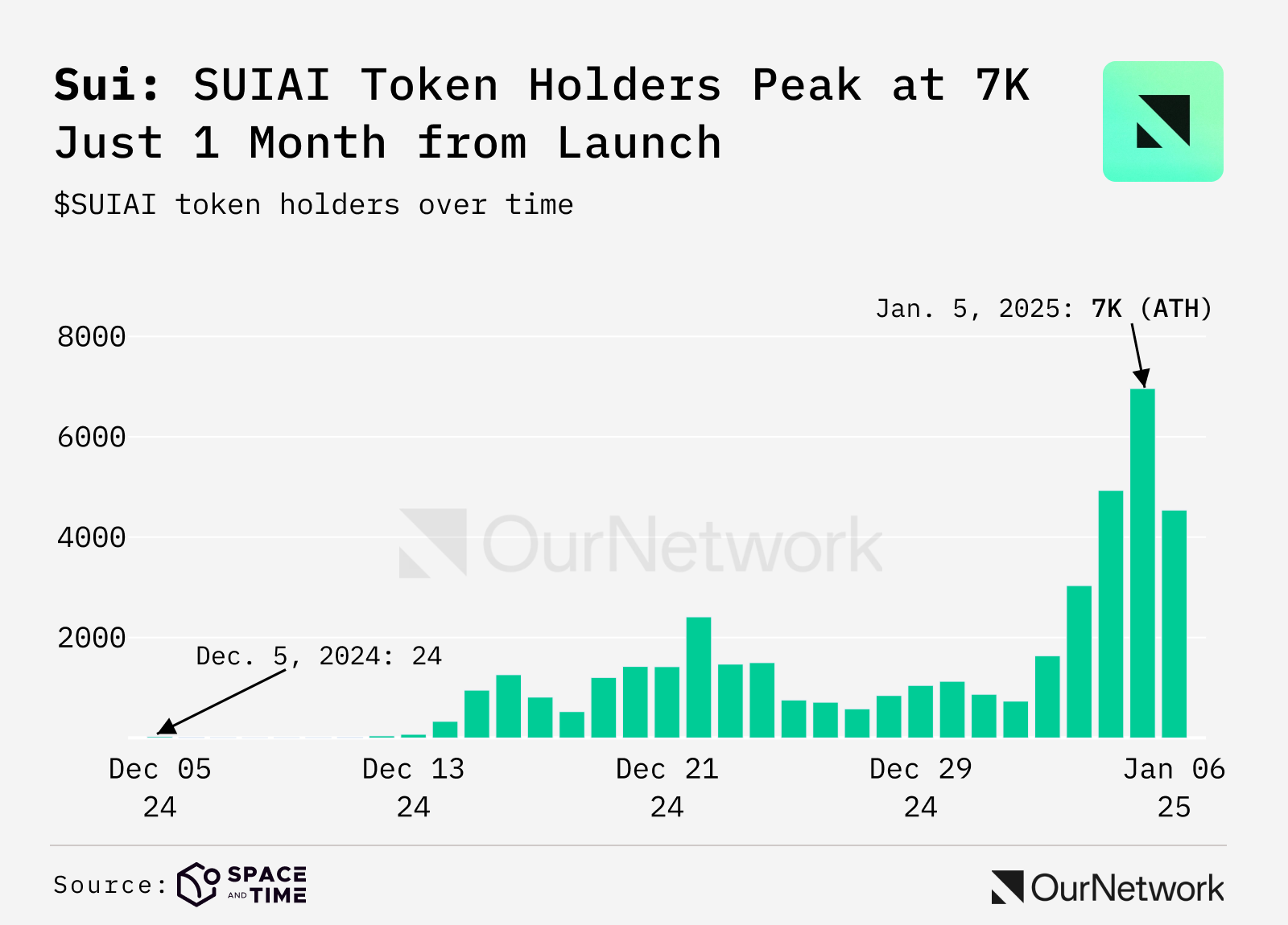 - SuiAi is an ai agent launchpad which allows users to create and launch AI agents that can perform tasks onchain. Since launching the price of SUIAI has increased by 3,900% from initial launch on Dec. 14, 2024 and has since reached a $40M to becoming the leading AI project by market cap on Sui.