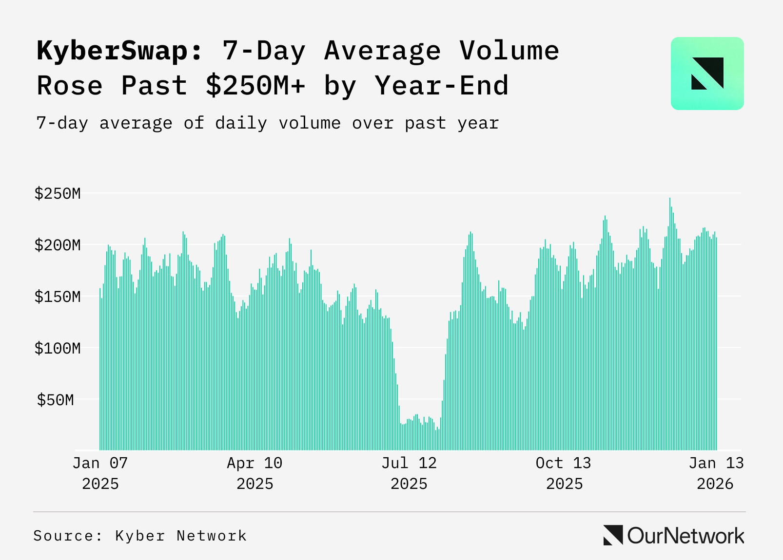 📈 KyberSwap in 2025: Q4 Volumes Stabilized above $150M Per Day, Wallets Decoupled from Volume, and $26B+ Executed Outside of Ethereum Mainnet