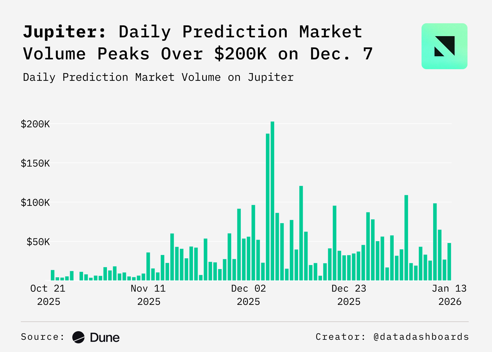- Beyond aggregation, Jupiter is also expanding into prediction markets, powered by Kalshi. Just three months after launch, the platform has already generated over $3.3M in prediction market volume, alongside a growing TVL of $451K, signaling early traction & user demand beyond spot trading and swaps.