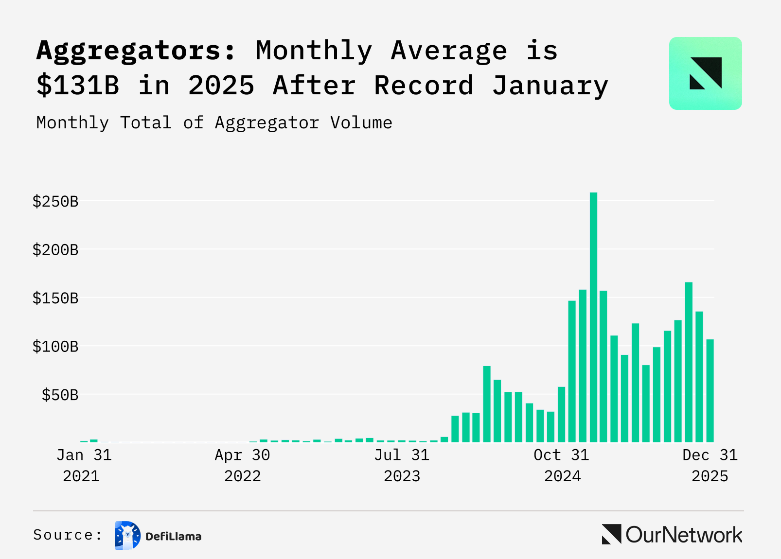 In this one, we're checking out aggregators, a sector whose monthly volume average doubled to $131B per month in 2025 after hitting a $65B monthly average in 2024.