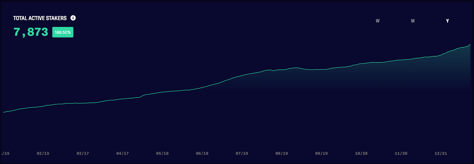 - Staking activity has also continued to grow steadily throughout the course of the year, with daily active stakers increasing ~187% over that same time period. Synthetix’s new and improved staking UI, which introduces a more seamless, lower friction staking experience, should foster continued growth in the staking activity going forward. (Source)
