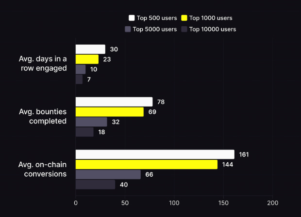 - Layer3 is well on its way to becoming a daily part of users' lives. The top 500 users come back, on average, 30 days in a row; the top 1,000 come back an average of 23 days in a row.