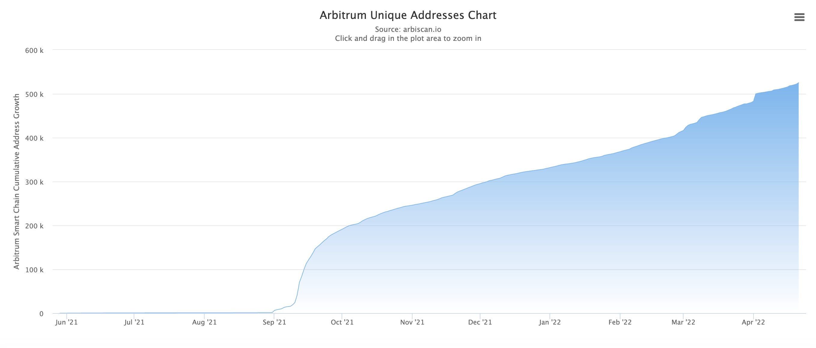 - The number of unique addresses just surpassed over 500k, likely due to the amount of NFT projects launching that offer users a new way to interact with their NFTs at a much cheaper price, without sacrificing the security of their assets.
