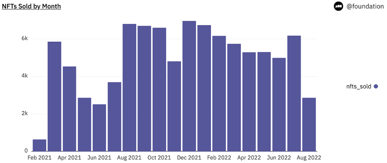 - Foundation is a creator-first NFT platform featuring an entirely on-chain NFT marketplace. Our NFT sales volume remains stable despite the market downturn, with over 6k NFTs sold in July alone. Additionally we have achieved nearly 70k ETH in volume after launching in February 2021, and have exciting plans in the near future to grow our community of nearly 85k+ users who have either minted or bid on an NFT.