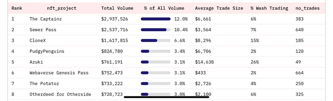 - Although Blur surpassed OpenSea in terms of volume market share, in the last 120D, ~15% of OpenSea volume originated from the trading of 8 collections (CryptoPunks, BAYC, Otherdeed, MAYC, Meebits, Moonbirds, CloneX, Doodles).