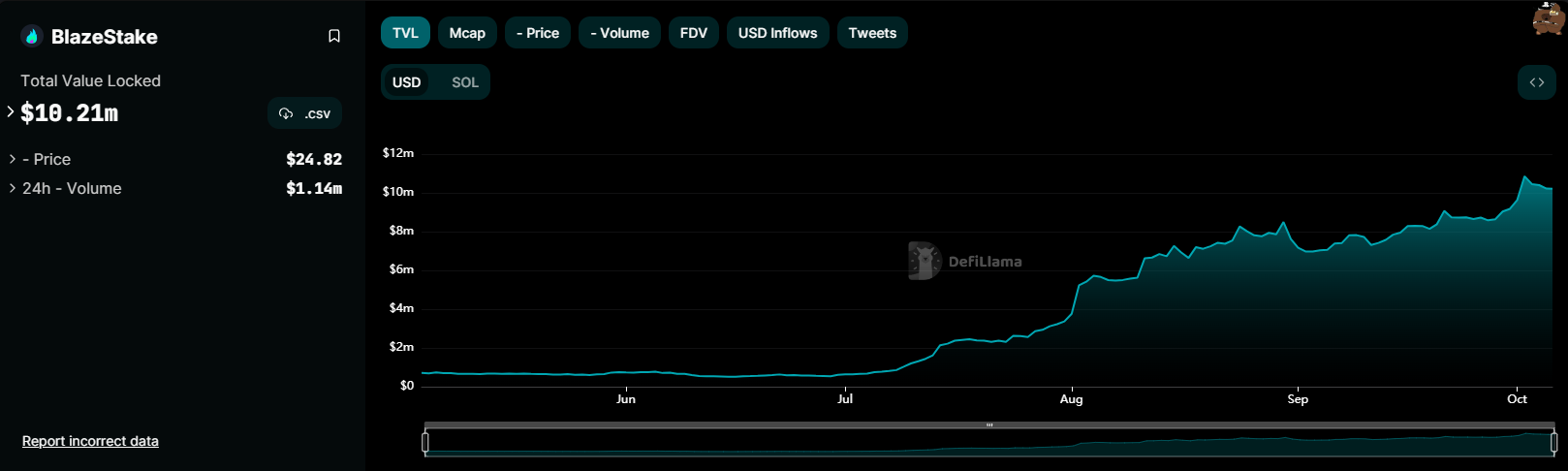 - SolBlaze sits at $10.2M TVL milestone in October, growing rapidly in Solana ecosystem, especially in Liquid Staking.