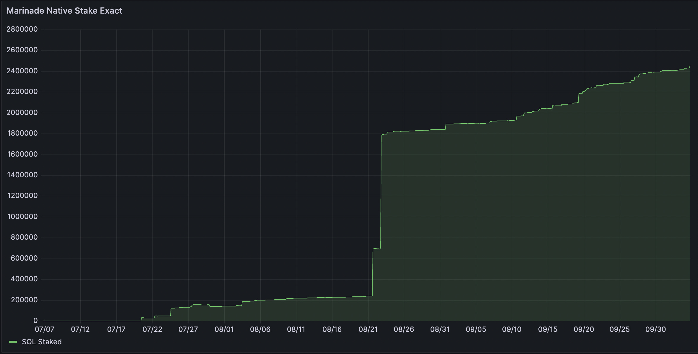 - Since launching in July, Marinade's new Native staking product has reached 2.5M SOL stake. Built with institutional investors in mind, Native is a first-of-its-kind product that delegates a staker's SOL to 100+ top validators in one click, but without any smart contract interaction. While early SOL investors with locked SOL are not eligible to use liquid staking, they can access Marinade Native. Through January 1st, stakers can also earn MNDE incentives on top of their SOL staking rewards.