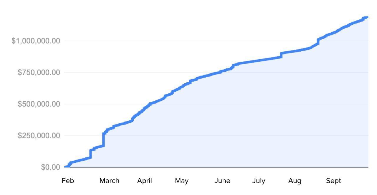 - The Photo Finish™ economy is backed by an in-game virtual currency called $DERBY that is backed by USDC. The growth in USDC deposits through the month of September was nearly exponential, reaching over $1.7M in total deposits.