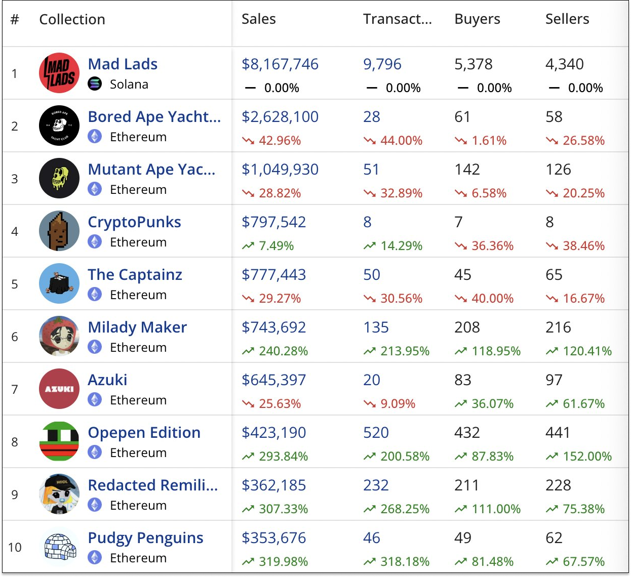 📈 Mad Lads becomes fastest collection to reach 1M SOL in total volume (achieved in the first 7 days)