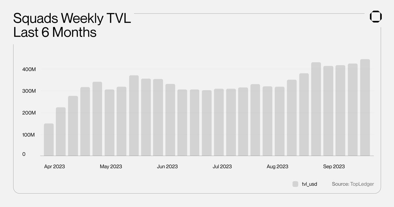 - Squads is the leading multisig on Solana, with 11k+ multisigs created and adopted by the largest teams to secure their treasuries and programs. It is built on top of Squads Protocol, which was the first program on Solana to be formally verified and has an immutable version (v3) that has been audited multiple times. In terms of treasuries deposited, Squads’ TVL has been sticky and gradually increasing each week, reaching over $450M.