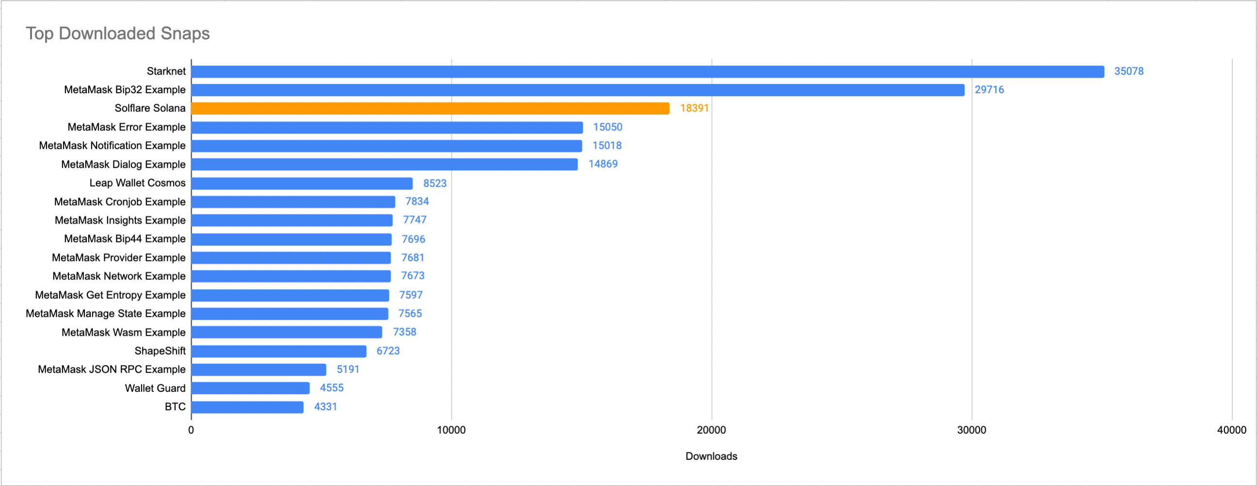 - Solflare launched the Solana Snap which allows all MetaMask users to store Solana-based tokens & NFTs, bridge from EVM to SOL and connect to any Solana app. The Solana Snap by Solflare is the third most downloaded Snap out of all Snaps. Over $800k has been bridged from EVM to Solana since its launch three weeks ago.