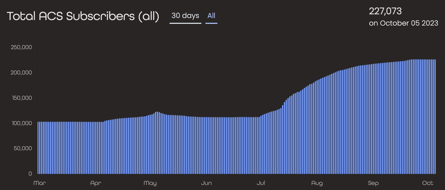 - Access Protocol offers a new way for creators to monetize and connect with their audiences on-chain. Instead of a traditional subscription (paying e.g. $9.99 per month), subscribers lock ACS tokens to a specific creator's pool to gain access to premium content. Creators earn rewards proportional to the amount of ACS staked in their pool. Today, Access is used by The Block, Coingecko, and many smaller independent creators. There are now 227,073 subscribers (=wallets with >=1 subscription) on Access.