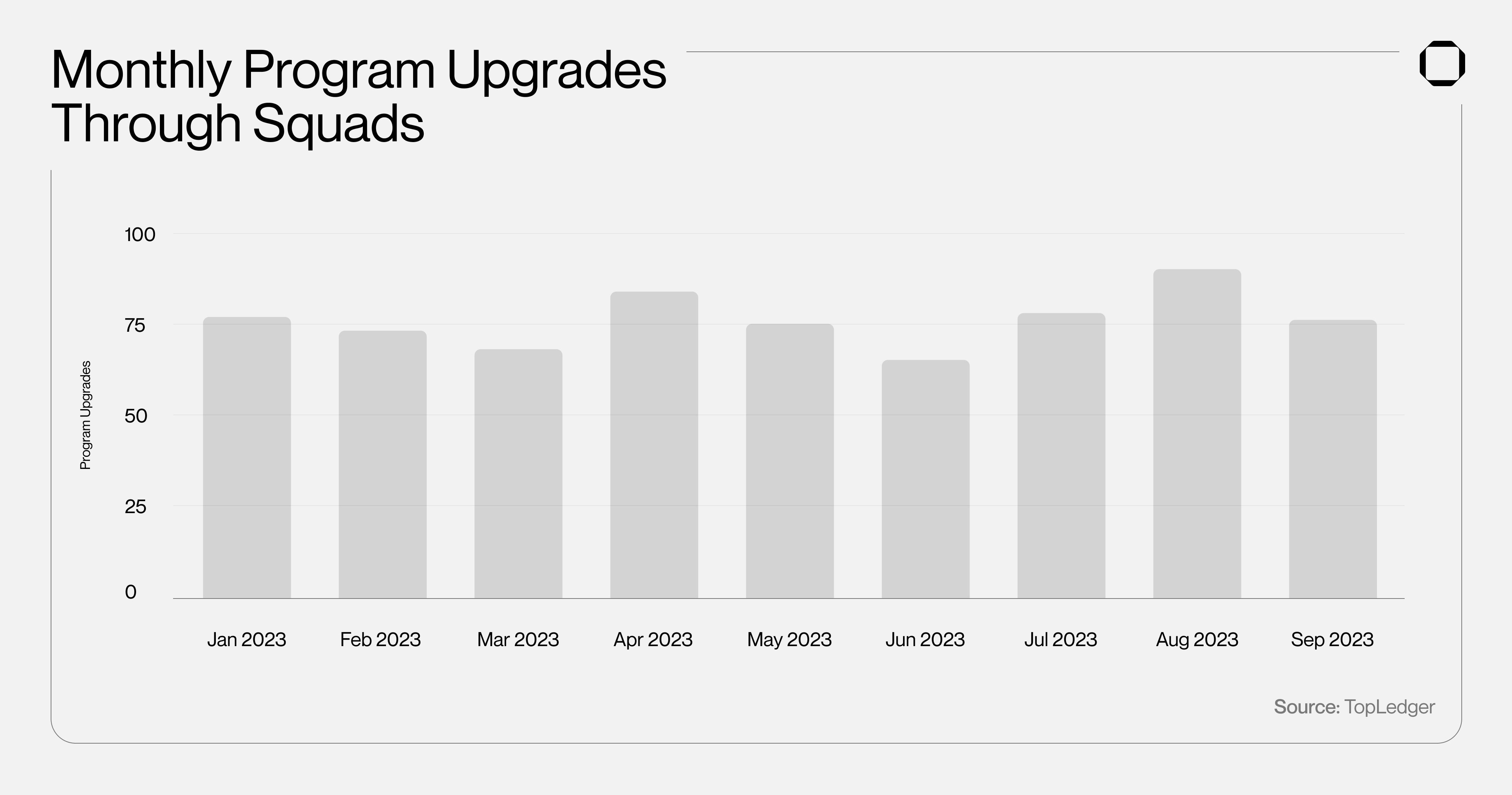 - Squads' major use case is program management, helping Solana protocols in securely updating their programs, with close to 75 program upgrades executed through Squads each month. Over 180 programs from leading projects such as Raydium, Helium, Jupiter, Marginfi, Drift and more are delegated to Squads.