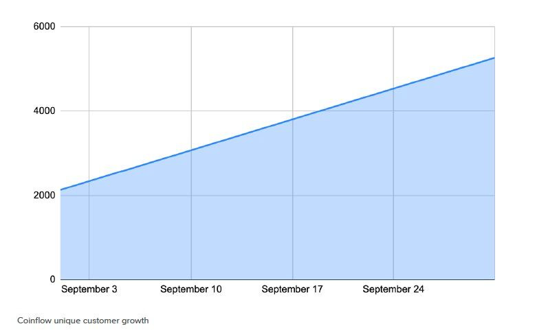 - In September, Coinfow passed the threshold of over 5,000 unique customers initiating transactions, with a 190% MoM increase of unique card checkout customers.